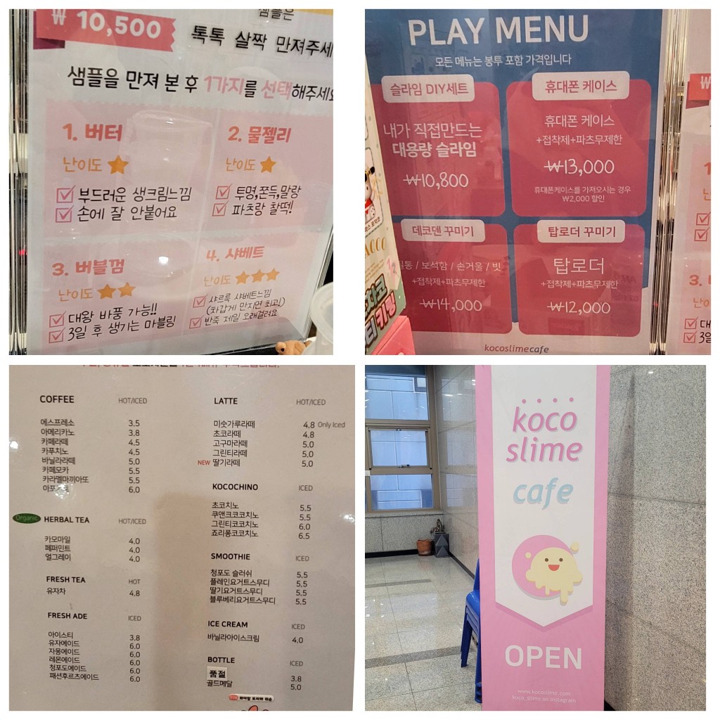 아이랑 이용할경우 아이 슬라임 택 1가지 어른 음료 1잔 주문이 대체적,